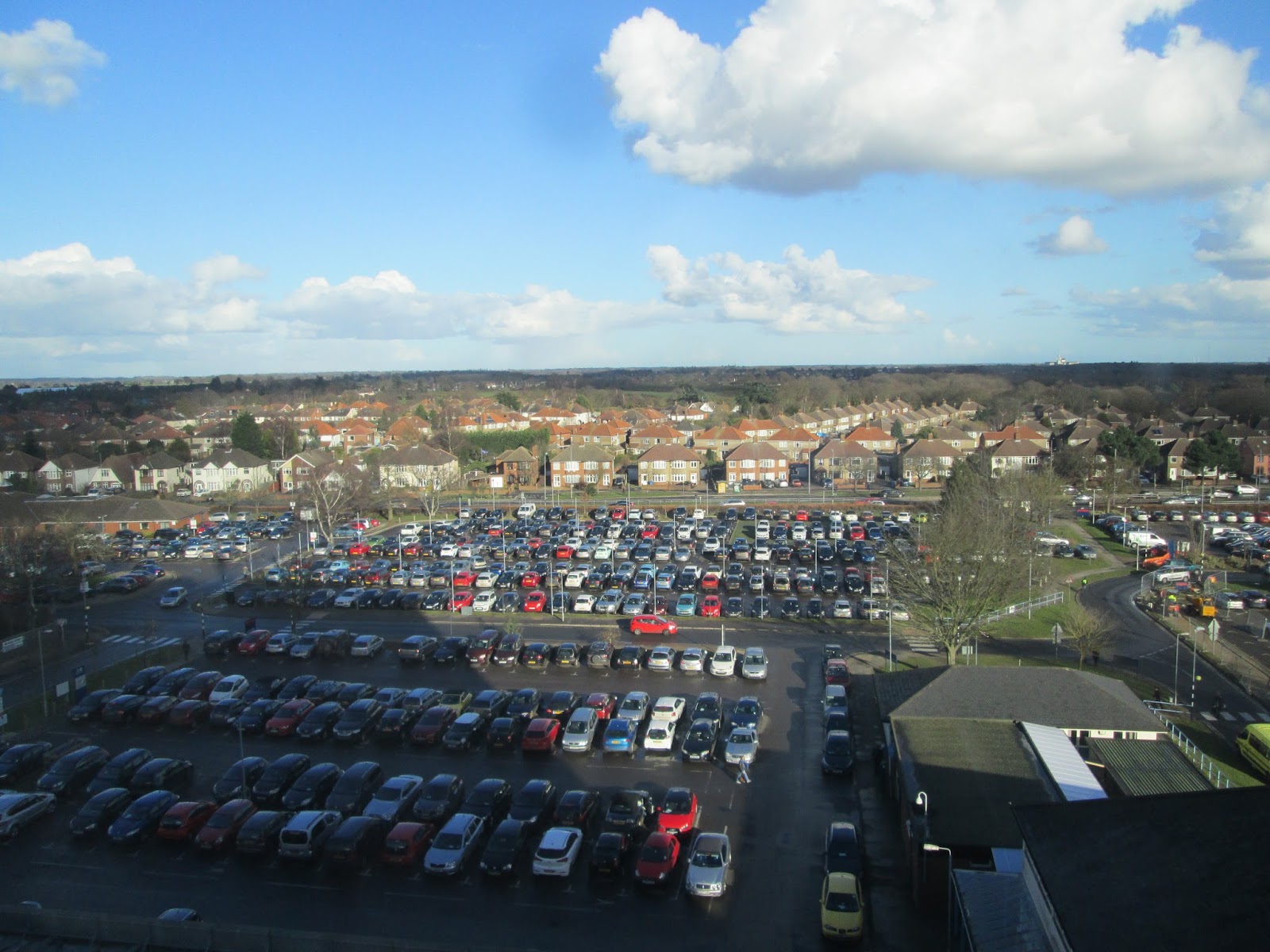 Exciting view of part of the hospital car park, the Australia Estate ( so called because the roads are named after Australian cities) and