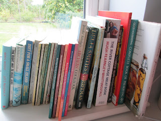 First job this morning was to unpack the 4 boxes of books brought back from the AGM yesterday. I made 4 heaps; charity shop, to keep, campsite library shelves, and car boot sale. The problem with the "to keep" pile was that I hadn't got room for them. So I had another sort out and moved some books out into the shelves in the front hall where I keep the campsite leaflets. The car boot ones have gone into boxes into the roof cupboard as we are not planning to do a sale for a couple of years. Charity shop ones are in the car ready for the next time we are in town and the ones for the campsite library will go out there next year. So THAT'S IT. No more selling books at shows and DEFINITELY no more buying books to sell.