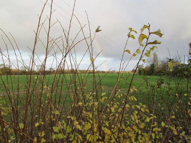 While I was in the craft room I spotted a rainbow ending down the hill over the village so nipped out to take a picture from the other side of the road. This years new growth of hedge got in the way a bit and the rainbow had faded by the time I got out there, but with nothing else to take a picture of today I thought I might as well add it to the blog! You can just about see it if you squint!