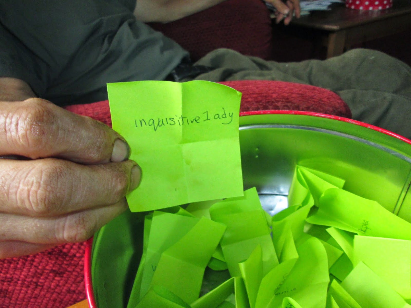 Thank you for everyone who entered the 500th post giveaway, there were loads of names in the hat. So just after midday, we sat down for lunch, put all the names in a hat which was actually a cake tin, C jumbled them about and pulled one out.