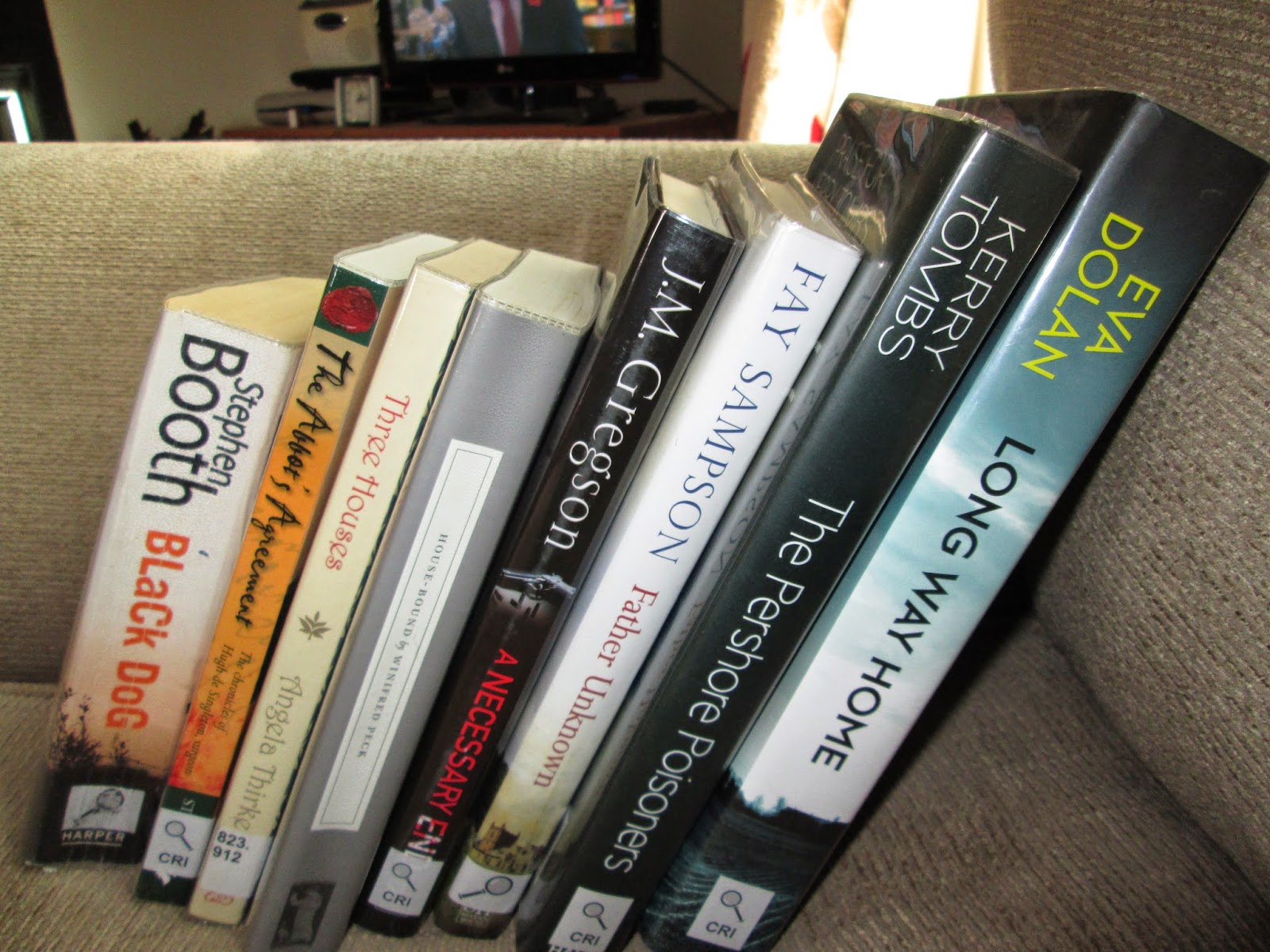 These are the books I brought home last time. I read and enjoyed James Runcie - Sidney Chambers and the shadow of Death ( On TV as Grantchester), Ann Cleeves- Thin Air, Alys Clare - Blood of the South, Sally Spencer - Death's Dark Shadow, Andrew Swanston - The Kings Spy, Mel Starr - Rest not in Peace.