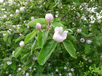 Pale pink is the blossom on the Quince