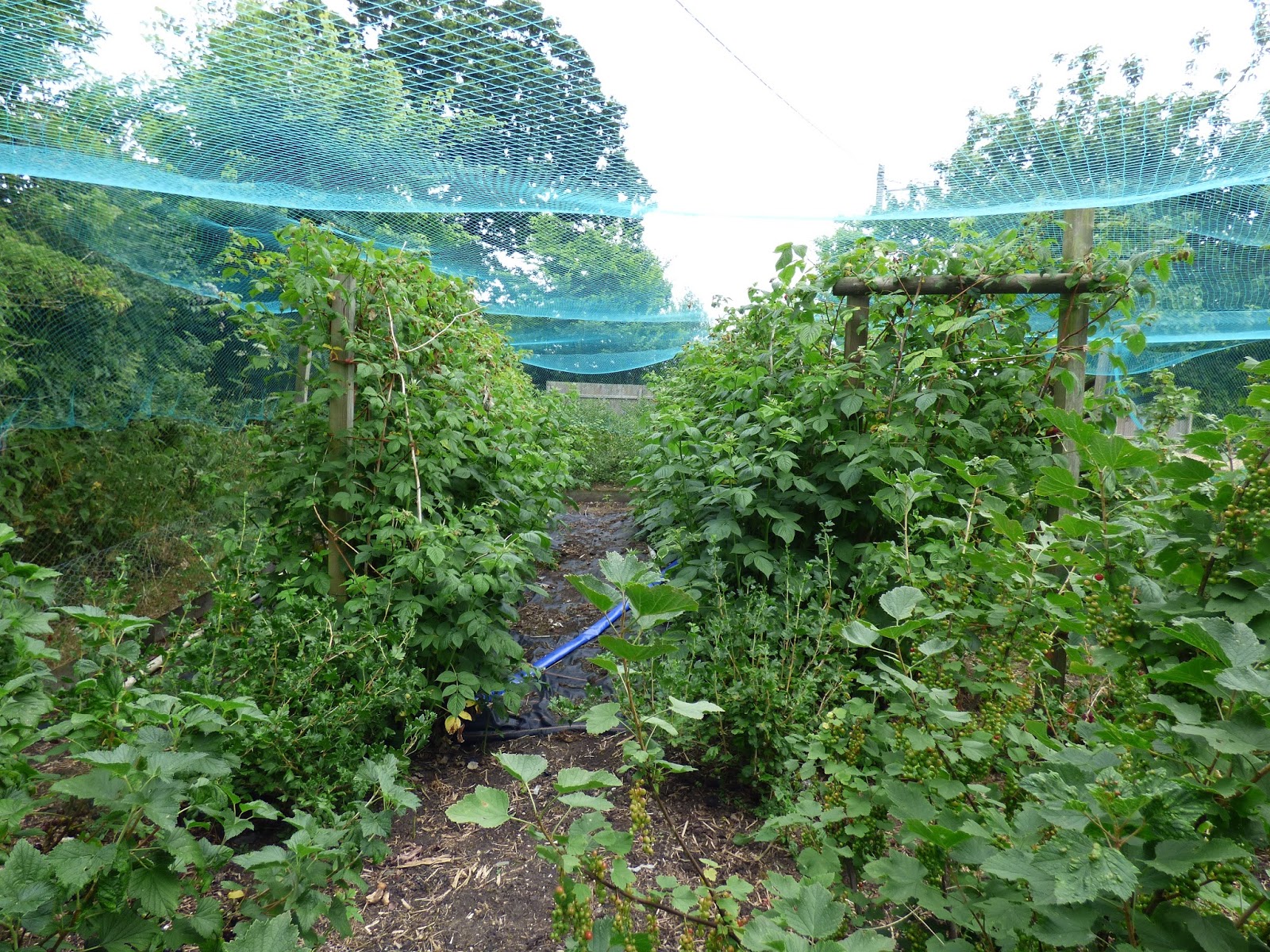All sorts of brassicas under the enviromesh. The B****** butterflies still get in sometimes. Autumn raspberry bed on the right.