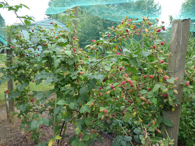 Our homemade and homegrown food eaten today will be raspberries, tayberries, salad leaves, beetroot, cucumber, tomatoes,potatoes, green beans, the sausage rolls made yesterday, bread, jam for Col and a apple and blackberry crumble with fruit from the freezer. The bought food eaten today will be porridge, milk, coffee, tea, cheese, yogurt, butter, a couple of biscuits and peanut butter for me.