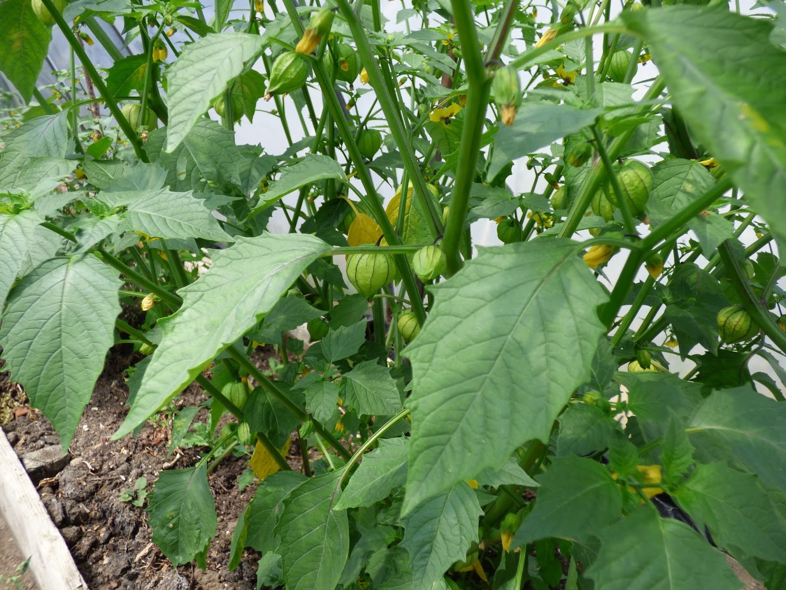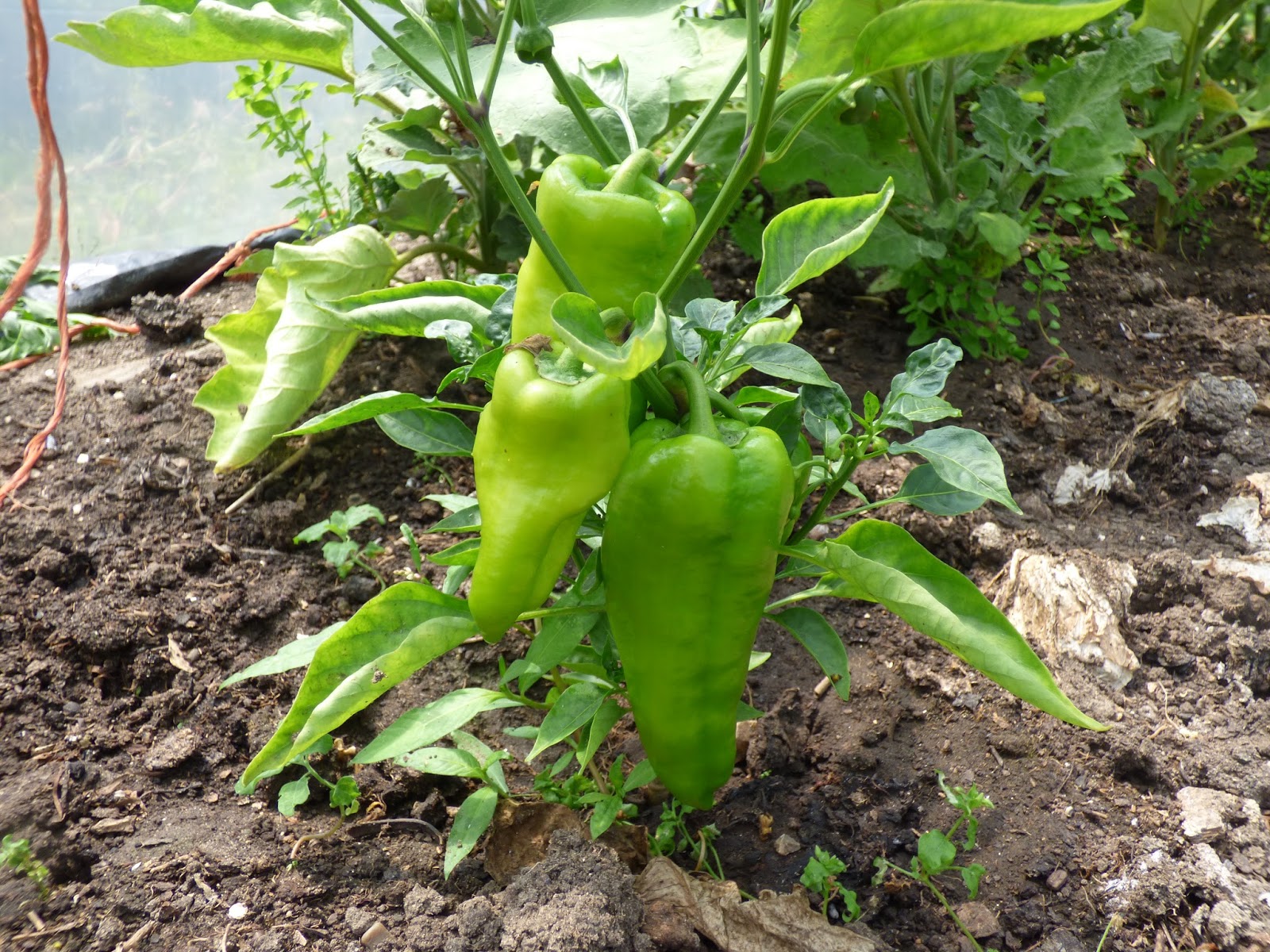 The pepper plants in the poly-tunnel are very short, although there are 3 good peppers on this one. Need to get in here and do some weeding I think.