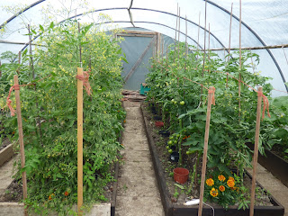 Tomatoes looking tidier in the biggest poly tunnel